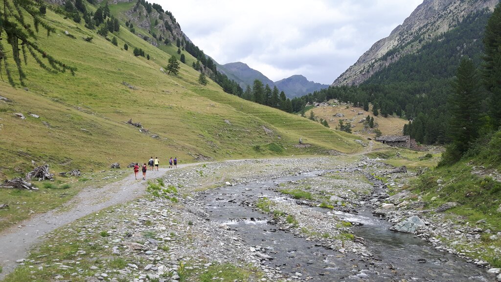 Si prosegue costeggiando il Torrente Vallanta, si lascia a destra il bivio a verso il Rifugio Bagnour e si prosegue in salita fino alle Grange Gheit (1925 m), che si trovano sulla sponda opposta del torrente e da cui prosegue il sentiero verso il Rifugio Quintino Sella.